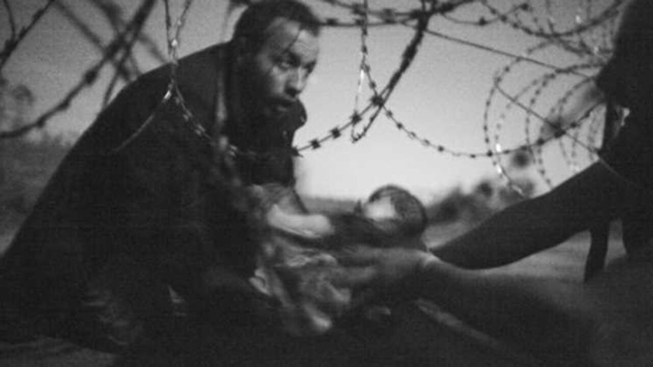 La instantánea en blanco y negro, titulada "Esperanza de una nueva vida", fue tomada por este fotógrafo independiente la noche del 28 de agosto de 2015, cuando unos refugiados trataban entrar en Hungría. El bebé pasa de mano en mano bajo los alambres desplegados entre Horgos, en Serbia, y Roszke, en Hungría.