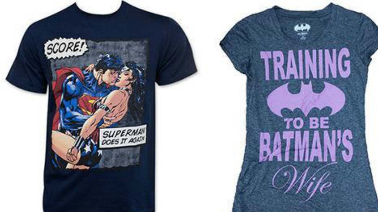 Este mensaje, escrito en letras rosadas sobre un fondo gris, fue el culpable de iniciar la polémica: “Entrenándome para ser la esposa de Batman”. Se trata de una camiseta para niñas y mujeres. La versión masculina dice: “Entrenando para ser Batman”. Cuando la foto de estos productos alcanzó las redes sociales las críticas le cayeron a la editorial DC Comics por ceder sus derechos de autor a este tipo de prendas.