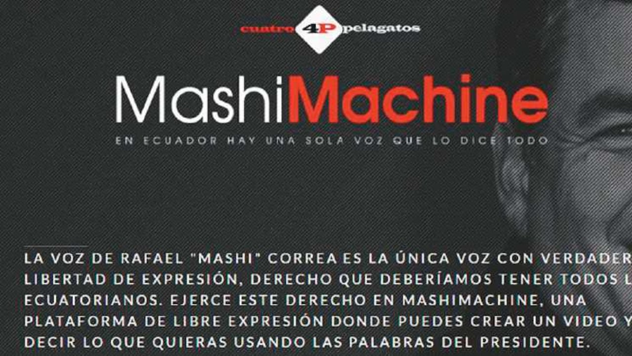 La iniciativa vio la luz en enero, y rápidamente se ha vuelto una opción para millones de ecuatorianos. Y, además, cuenta con una particularidad. La pequeña sala de redacción integra a Crudo, periodista y creador de memes, y al caricaturista Chamorro, que de manera creativa han sabido publicar sus ideas e irritar a los censores. Un gran ejemplo es el ‘MashiMachine’, una página que juega con el nombre en Twitter del presidente Correa (@MashiRafael) e invita a los usuarios a poner palabras en su voz, que proclaman la “única con verdadera libertad de expresión”. Así pues, los internautas escriben las palabras y Correa las pronuncia en un video instantáneo. A la fecha, casi 120.000 ecuatorianos han accedido a la plataforma para escuchar sus ocurrencias de boca de Correa.