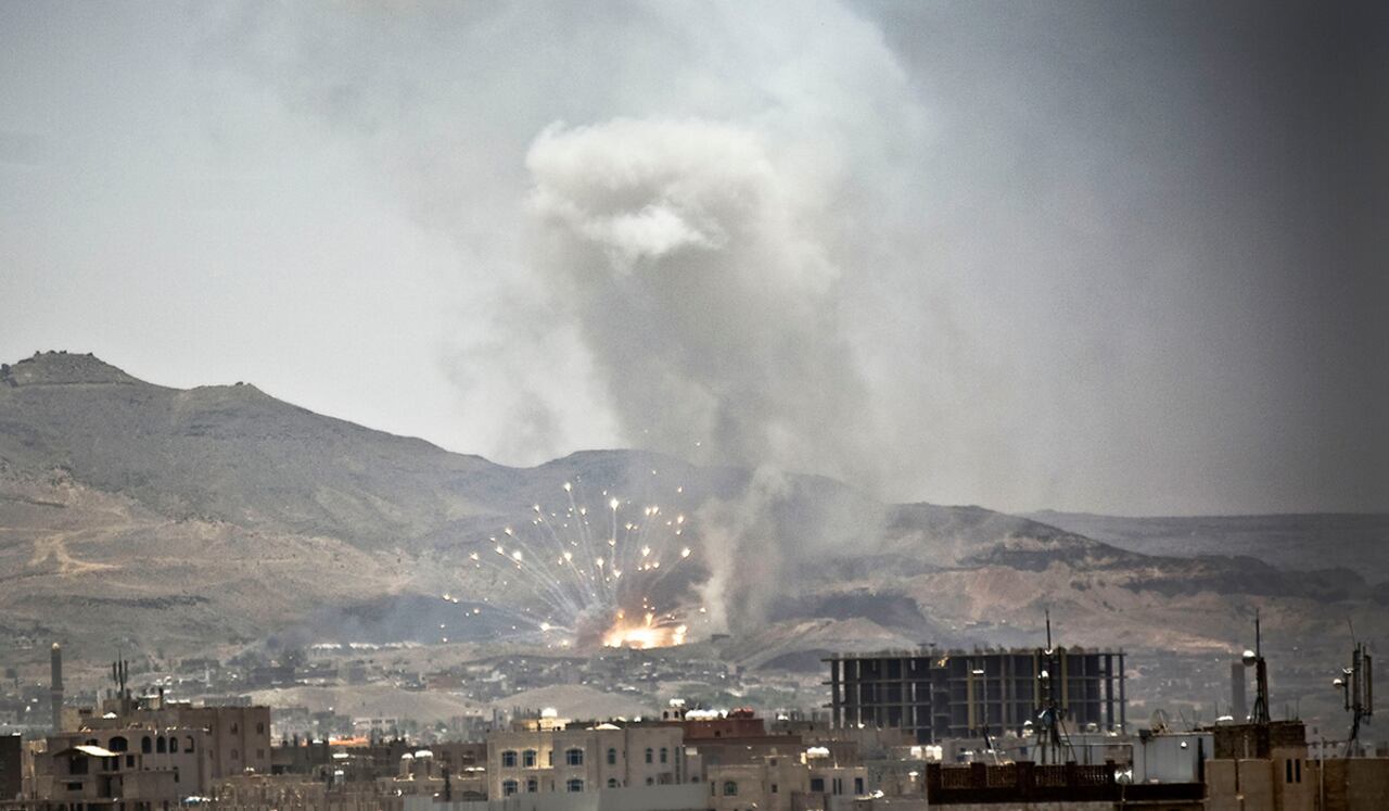 El humo se expande luego del ataque liderado por Arabia en un sitio en el que se cree permanece el escondite de armas más grande de la capital yemení, Saná. (AP)