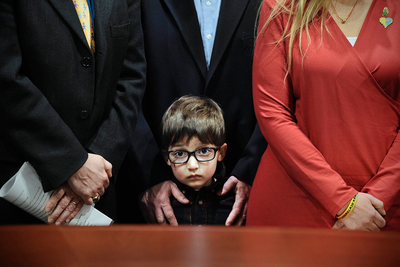 El primo de Jesse Lewis, una de las víctimas del tiroteo en la Escuela Sandy Hook, aparece junto a su familia durante una rueda de prensa en Hartford, Estados Unidos. (AP)