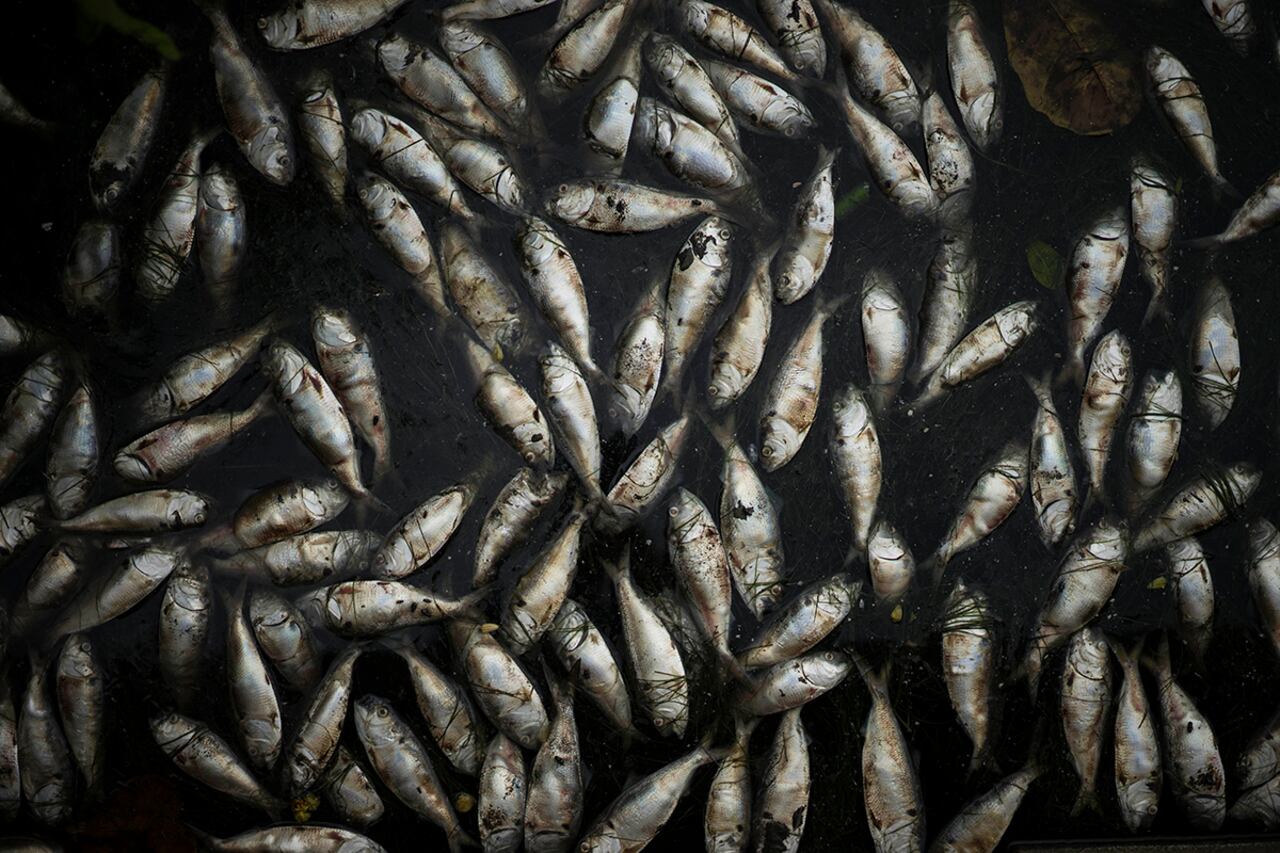 Los peces de especie saboga flotan en el lago de Rodrigo de Freitas, en Sao Paulo, Brasil. (AP)