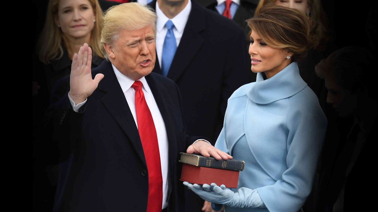 Luego de prestar juramento como el 45to presidente de los Estados Unidos, Donald Trump se paró detrás del atril de cara a miles de personalidades e invitados, en una ceremonia caracterizada por la solemnidad. Vistiendo una corbata de color rojo intenso, el magnate comenzó su discurso enviando un mensaje de unión para los americanos. Le gradeció al presidente Barack Obama y le dijo a su familia: "han sido magníficos".