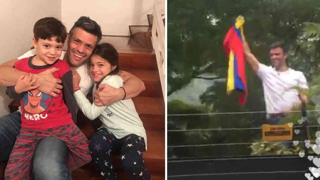 La breve aparición de Leopoldo, por cerca de un minuto, se produjo segundos después que su esposa Lilian Tintori tuiteara la primera reacción de la familia a la excarcelación, calificándola como "un paso más por la libertad y la paz de Venezuela ¡Fuerza y Fe!".
