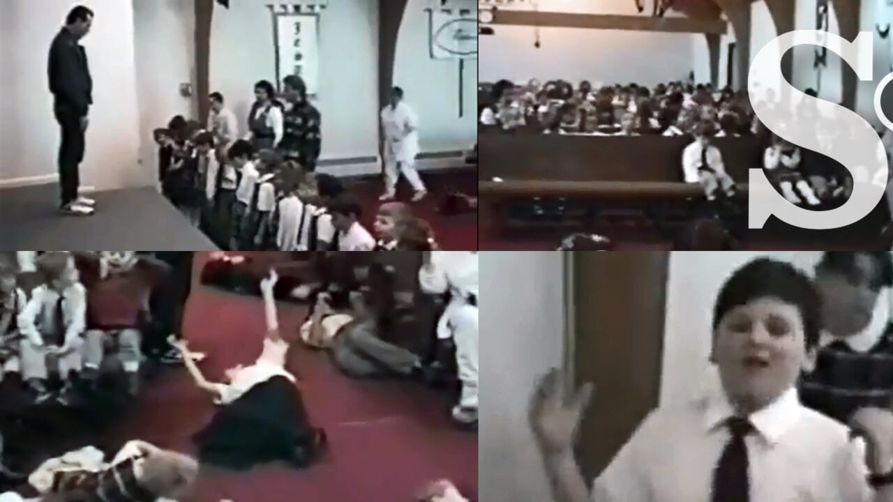 Las imágenes tienen baja resolución. En lo que parece ser un templo se encuentran varias bancas llenas de niños, más de cincuenta menores que, algunos desconcertados y otros expectantes, reciben lo que parece ser una orden, o unción, de un pastor. Después de un manoteo reaccionan, algunos se balancean, otros gritan.