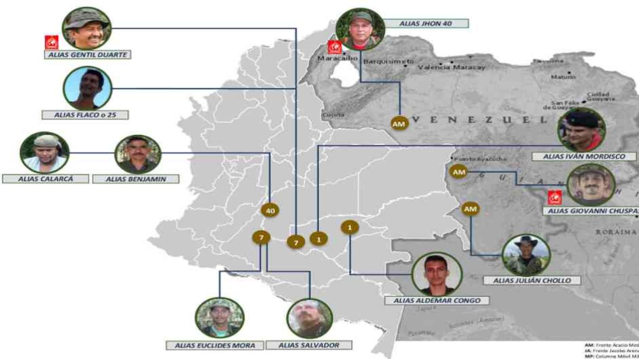 Casualmente, los tres hombres a su mando se conocieron durante su paso por el frente oriental de esa guerrilla, tienen órdenes de captura en Estados Unidos o circulares rojas por cargos relacionados con el narcotráfico y se han mostrado en desacuerdo con los acuerdos de paz llevados a cabo con el gobierno.