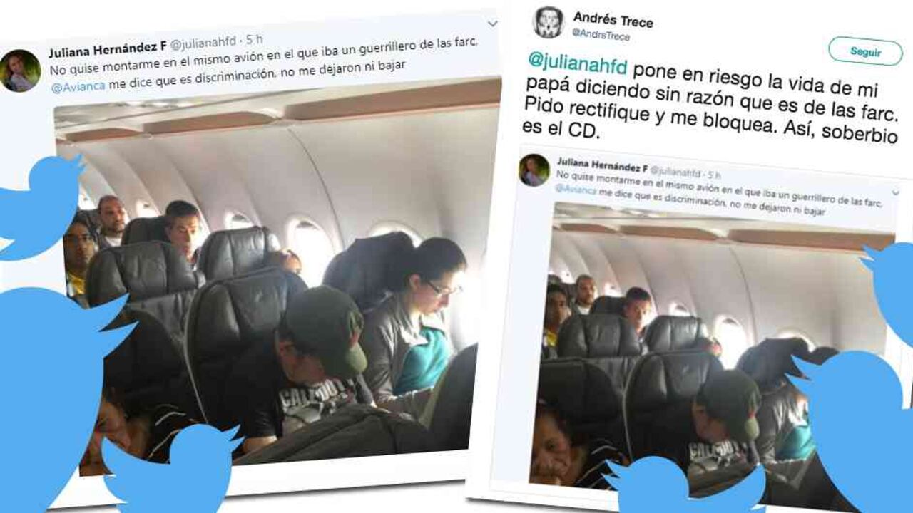 Este martes#SanciónSocialALasFarc fue tendencia en redes sociales gracias a un trino de la esposa del senador antioqueño del Centro Democrático, Alfredo Ramos Maya. "No quise montarme en el mismo avión en el que iba un guerrillero de las Farc, Avianca me dice que es discriminación, no me dejaron ni bajar", escribió Juliana Hernández en un trino que se viralizó rápidamente y generó reacciones de todo tipo.