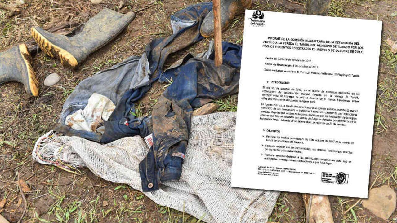 Este es el documento de la Defensoría del Pueblo, una de las primeras entidades que llegó a la zona de Tumaco donde fueron asesinados seis campesinos tras enfrentarse con la Policía Antinarcóticos, hace poco menos de un mes. La Fiscalía está próxima a revelar sus conclusiones.