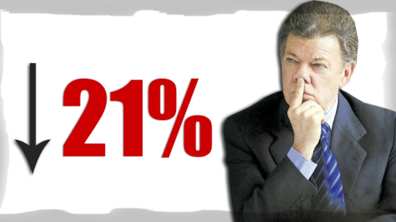 La popularidad del presidente Juan Manuel Santos, según la encuesta Gallup, está sólo en el 21 por ciento.
