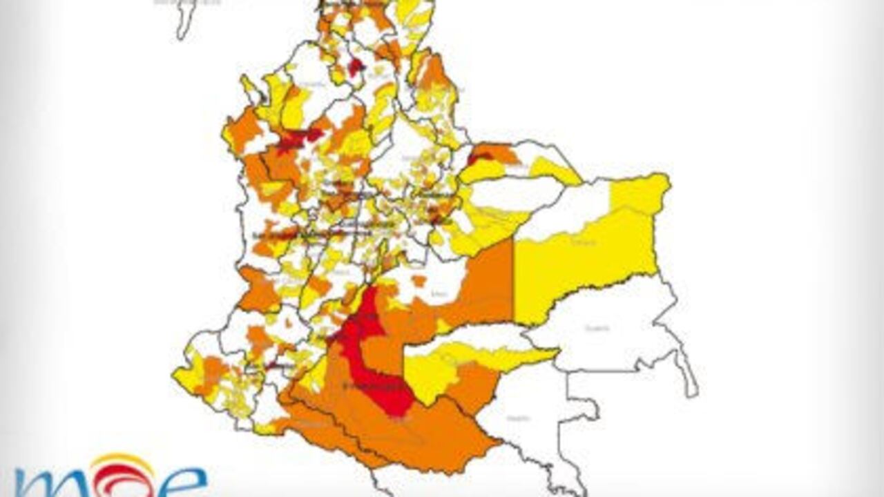 Al cruzar toda la información, el informe encontró que 447 municipios presentan algún grado de riesgo por estas razones. De estos, 260 se encuentran en riesgo medio, 71 en riesgo alto y 116 en riesgo extremo.