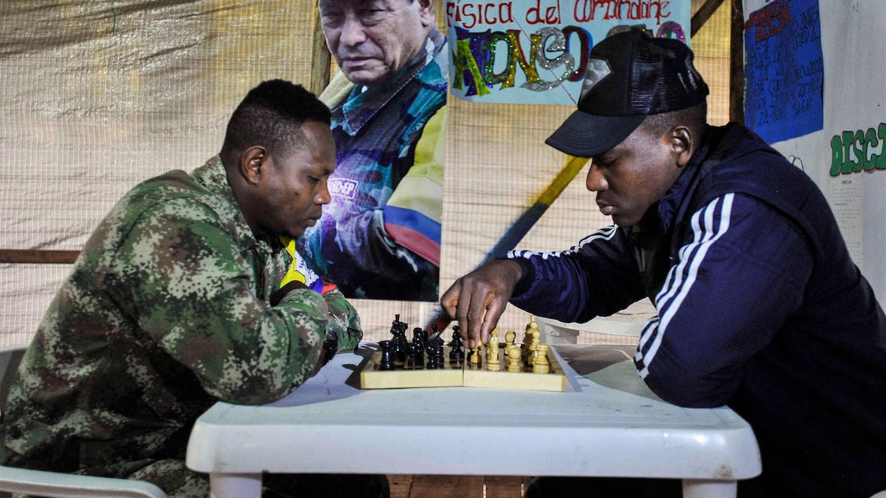 A Marcela Velandia, por ejemplo, el tiempo se le va cumpliendo con las tareas diarias que le asignan y en clase. Con cuaderno en mano, un grupo de 30 personas se juntan en el aula máxima de la zona veredal de Icononzo, Tolima. Son dos horas en la mañana y dos en la tarde las que dedican diariamente. La idea, es abonar el terreno mientras las instituciones llegan. Hasta hace unos días no había un profesor especializado, pero son siete guerrilleros con niveles de escolaridad más altos los que se ofrecen a impartir las clases. Entre ellos, un chileno al frente de matemáticas.