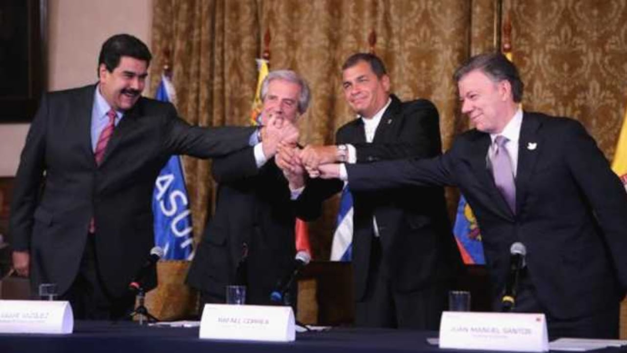 El encuentro entre los mandatarios de Colombia y Venezuela, y los garantes, Rafael Correa, presidente de Ecuador, y Tabaré Vásquez, presidente de Uruguay, duró cinco horas. La reunión se dio en la casa privada del presidente Correa. Eso, según fuentes de la Presidencia de ese país, era parte de la estrategia para propiciar un ambiente más cercano entre los presidentes.