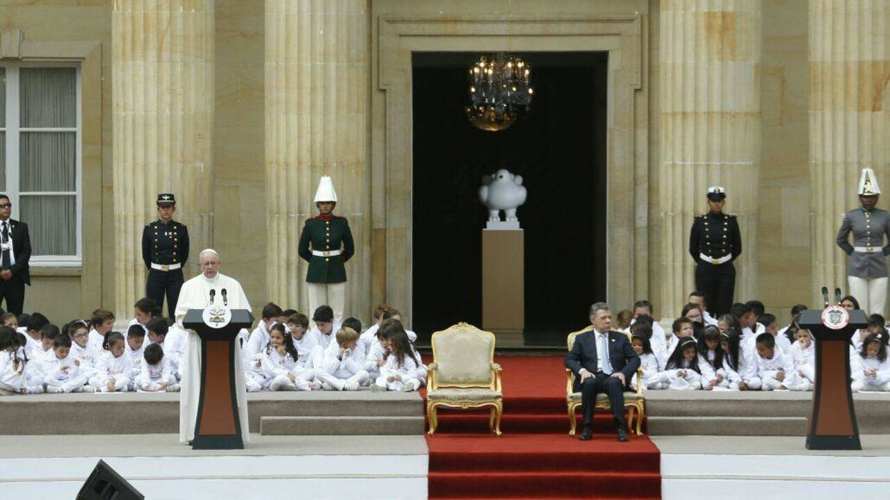 El sumo pontífice le entregó al país un discurso muy conmovedor que fue recibido por quienes estaban en la Plaza de Armas en medio de aplausos y euforia. El papa llegó en un carro sencillo acompañado por miles de bogotanos que salieron a las calles para verlo pasar. Llegó en medio de un protocolo estricto que rompió de inmediato. Decenas de niños, algunos con enfermedades graves, lo recibieron en ese camino. Y el abrazo y la simpatía que el papa desplegó por ellos conmovió a quienes estaban presentes o seguían la transmisión por televisión.