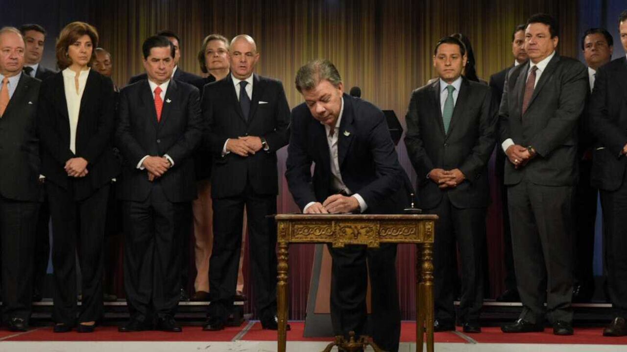 El mandatario estuvo acompañado por todos sus ministros, el vicepresidente Germán Vargas Lleras incluido, cuando firmó el decreto que convoca a las urnas. La pregunta que se pondrá a consideración de los colombianos es: “¿Apoya el Acuerdo Final para la terminación del conflicto y la construcción de una paz estable y duradera?”