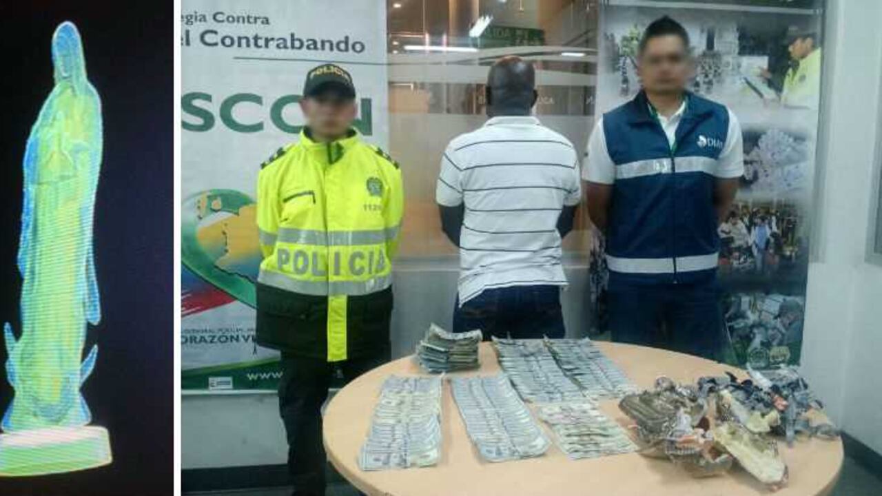 La Policía capturó en el aeropuerto El Dorado a un hombre que, aprovechando la Semana Santa, pretendía ingresar ese dinero dentro de una estatuilla religiosa.