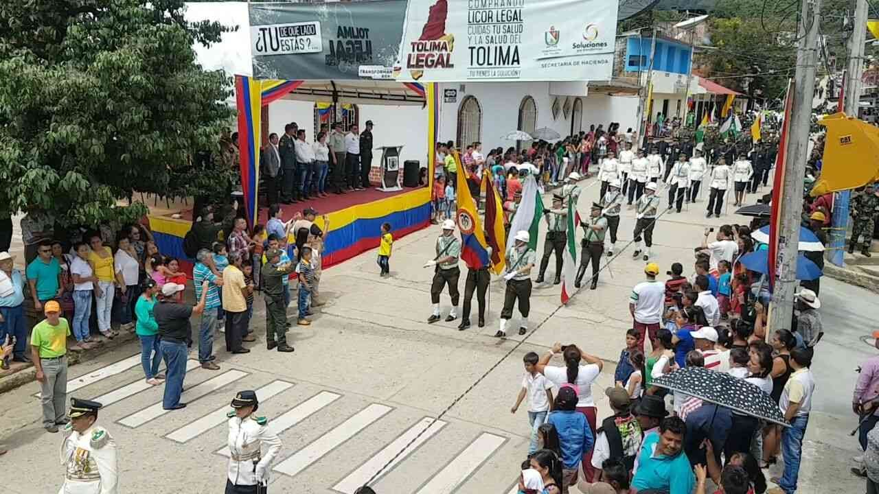 "Esta fue una zona netamente guerrillera, por acá nacieron las Farc. Entonces, por razones de seguridad era imposible hacer el homenaje", manifestó el coronel José Óscar Jaramillo, comandante operativo del Tolima. Eran otros tiempos, "cantábamos el himno e izábamos el pabellón pero no podíamos hacer nada más porque de una nos mandaban un tatuco o una granada", recuerda.