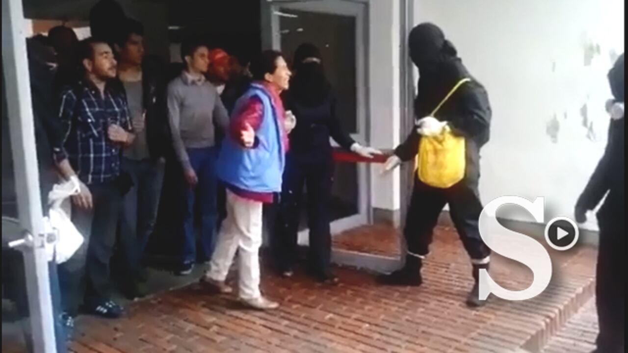 En un corto video que circula en redes sociales quedó registrado cómo un grupo de estudiantes se enfrenta con encapuchados.