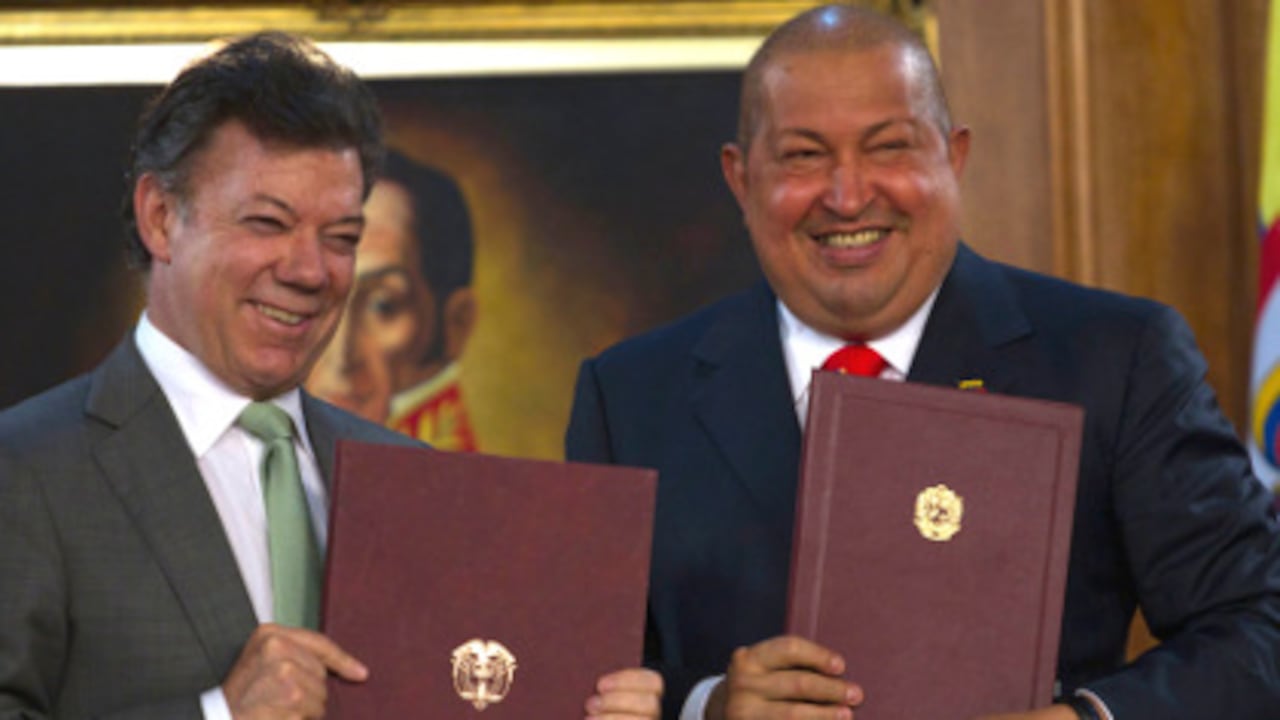 Los presidentes de Venezuela, Hugo Chávez, y Colombia, Juan Manuel Santos, sellaron este lunes en Caracas varios de los acuerdos que comenzaron a estudiarse el 10 de agosto de 2010, cuando los dos mandatarios restablecieron en Santa Marta las relaciones entre los dos países.
