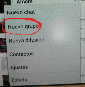 1. Cuando entre a Whatsapp, debe buscar el botón general e opciones de su celular y en el menú que se abre, oprima ‘Nuevo grupo’.