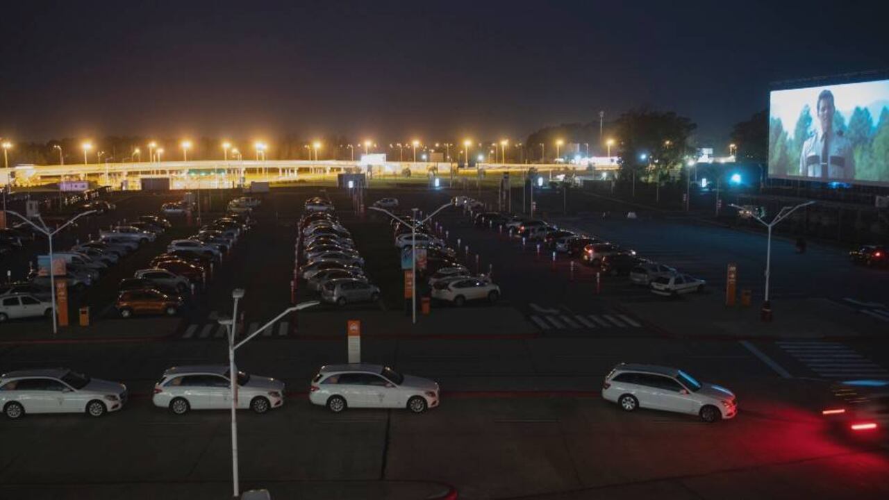 El aeropuerto internacional de Carrasco cambió aviones por películas; a falta de vuelos debido a las restricciones por la pandemia de coronavirus, el estacionamiento de la terminal se convirtió este fin de semana en uno de los primeros autocines de Uruguay.