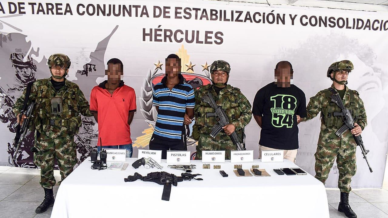 “Los capturados son conocidos en la estructura criminal con los alias de Deuson, Guacho, y RG. En el presente año, estos delincuentes habrían adquirido armamento y material de comunicaciones, además de realizar el reclutamiento de diferentes delincuentes, para la realización de acciones terroristas contra la Fuerza Pública y la población civil”, detalló la institución militar.