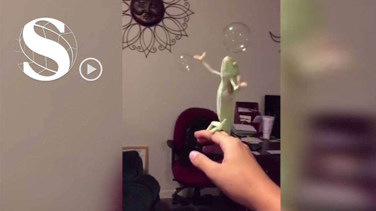 Quizás es por esto que el video viral a continuación es bastante particular, ya que el protagonista es un camaleón. Un reptil que al igual que sus ‘familiares’ no son para nada fotogénicos. Sin embargo, la gracia con la que el pequeño animal se lanza a la caza de unas burbujas de jabón creadas por su dueño, le ha valido convertirse en un fenómeno en redes sociales.