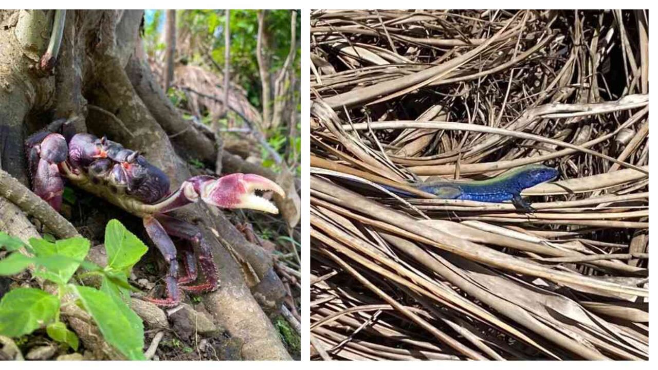 El cangrejo negro y el lagarto azul, especies que sobrevivieron al huracán Iota