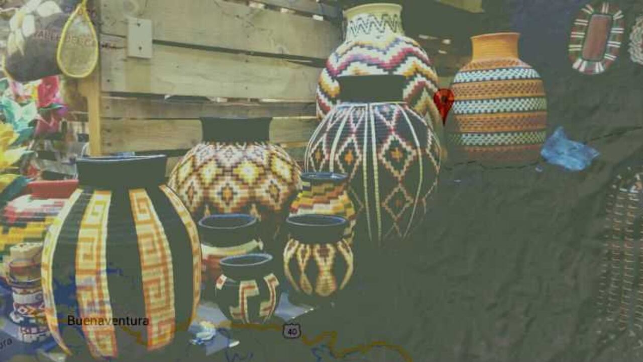 El canasto negro, ese con líneas longitudinales blancas y rombos concéntricos, navegó río arriba con el resto de la mercancía desde este municipio al sur del Chocó hasta la intersección del San Juan con el río Calima. De ahí lo subieron a un camión que lo transportó hasta Buenaventura. Desde allá hasta Bogotá llegó por carretera, al igual que sus vendedores.