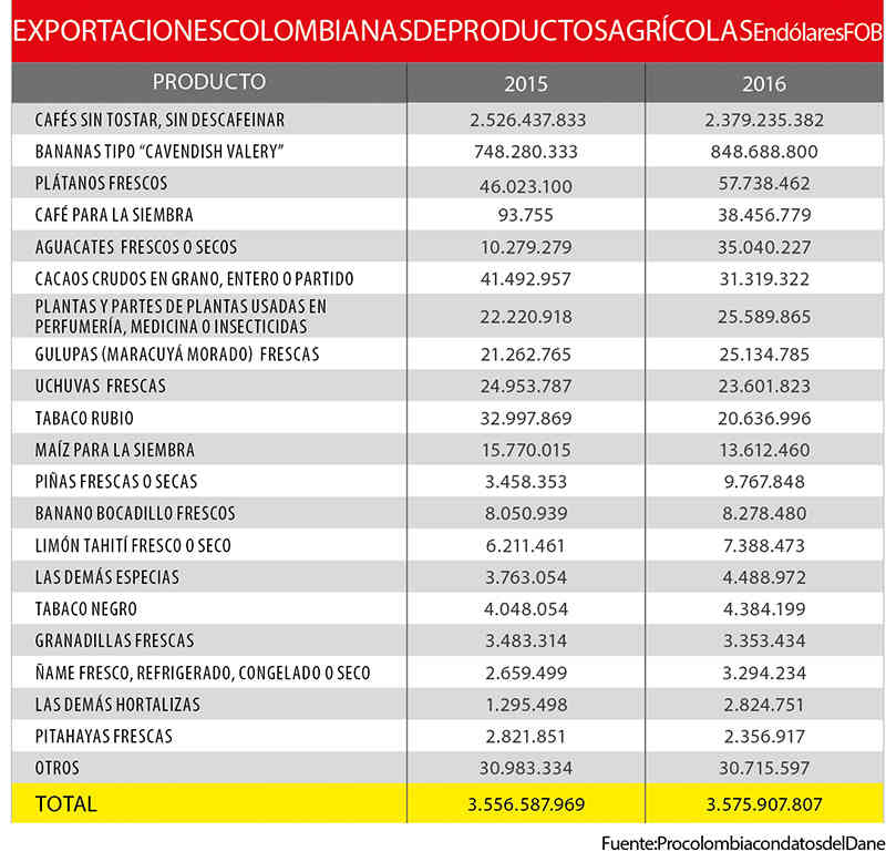 Fuente: Procolombia con datos del Ministerio de Agricultura