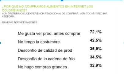 Este nuevo sector de consumo masivo hasta hora está en crecimiento. Por ejemplo, en América Latina es apenas un modelo emergente con el 0,2% de participación y esto porque según Felipe Londoño, gerente de cuentas de Kantar Wolrdpanel “Las barreras que enfrenta el E-commerce tienen que ver con las costumbres de los compradores latinos, ya que el 73% de los que no compran en Internet prefieren ver el producto antes de comprarlo. La segunda razón por la que no compran algún producto o servicio en la red, es porque temen proporcionar datos personales o financieros (39%).”