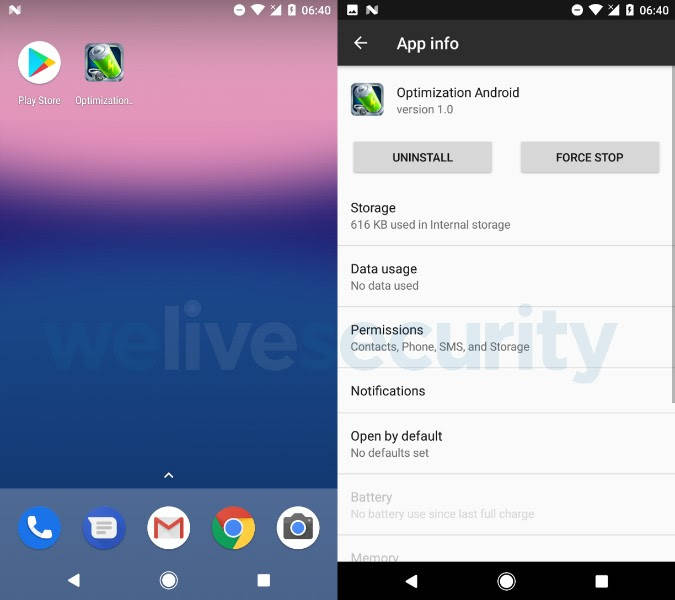 En el caso de dispositivos que son inutilizables debido al bloqueo de pantalla desplegado por este troyano, ESET recomienda utilizar el modo seguro de Android y desinstalar una aplicación llamada “Optimization Android” desde el menú administración de aplicaciones en la sección configuración.