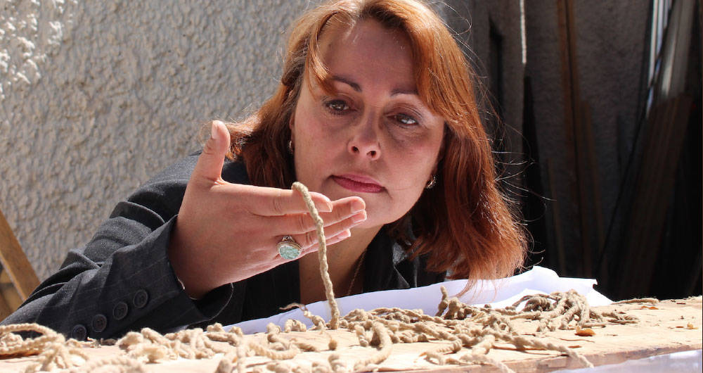 Hasta hace poco se creyó que los incas usaban los quipus –nudos hechos con cordones de pelo animal– para representar patrones numéricos. Sin embargo, la historia cambió cuando los habitantes de un pequeño pueblo de Perú le dieron a Sabine Hyland un par de ejemplares del siglo XVIII, para que los analizara. Hyland, profesora de antropología de la Universidad de Saint Andrews, en Escocia, descubrió que esta tribu indígena, al igual que los quechuas, usaba las cuerdas de lana también para representar frases. O sea que era una forma de escritura. Según explicó a un periódico de la Universidad de Chicago, las fibras, provenientes de vicuñas, alpacas y venados, “tenían 14 colores diferentes que permitían crear sílabas y 95 patrones”. Afirma que para descifrar el mensaje el receptor debía diferenciar las texturas por medio del tacto. Actualmente, se conservan alrededor de 700 quipus en varios museos del mundo.
