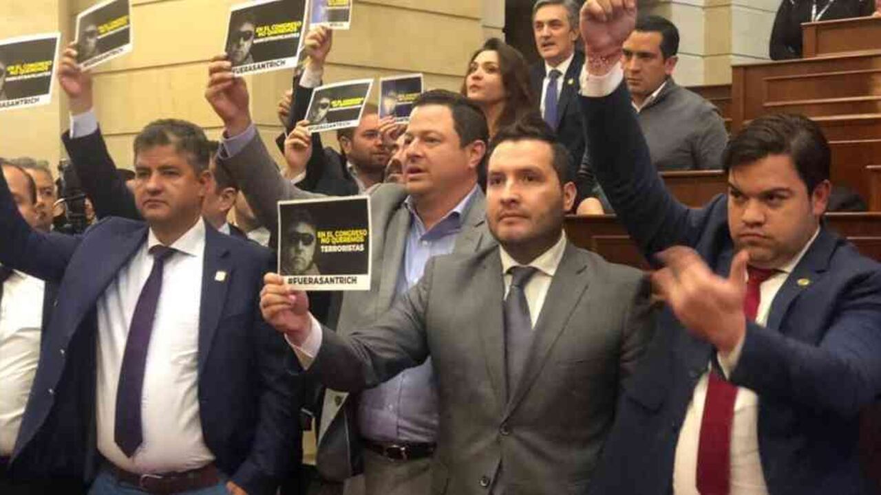 El debate, citado por el presidente de la Cámara, Alejandro Carlos Chacón, empezó, pero no pudo ser terminado ante la solicitud de intervenciones por parte de diferentes congresistas que querían pronunciarse sobre la presencia de Santrich en el Congreso.