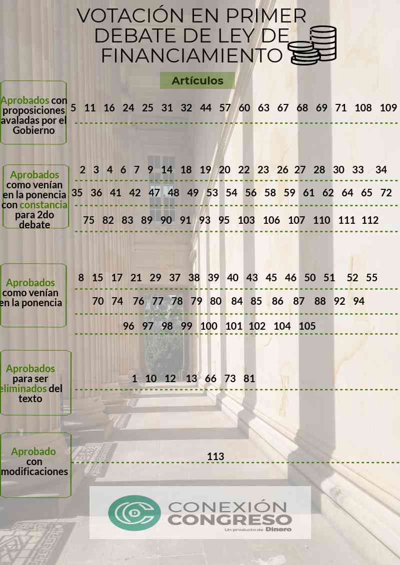 Esta es la votación final del articulado en primer debate de la Ley de Financiamiento, realizada en comisiones conjuntas.