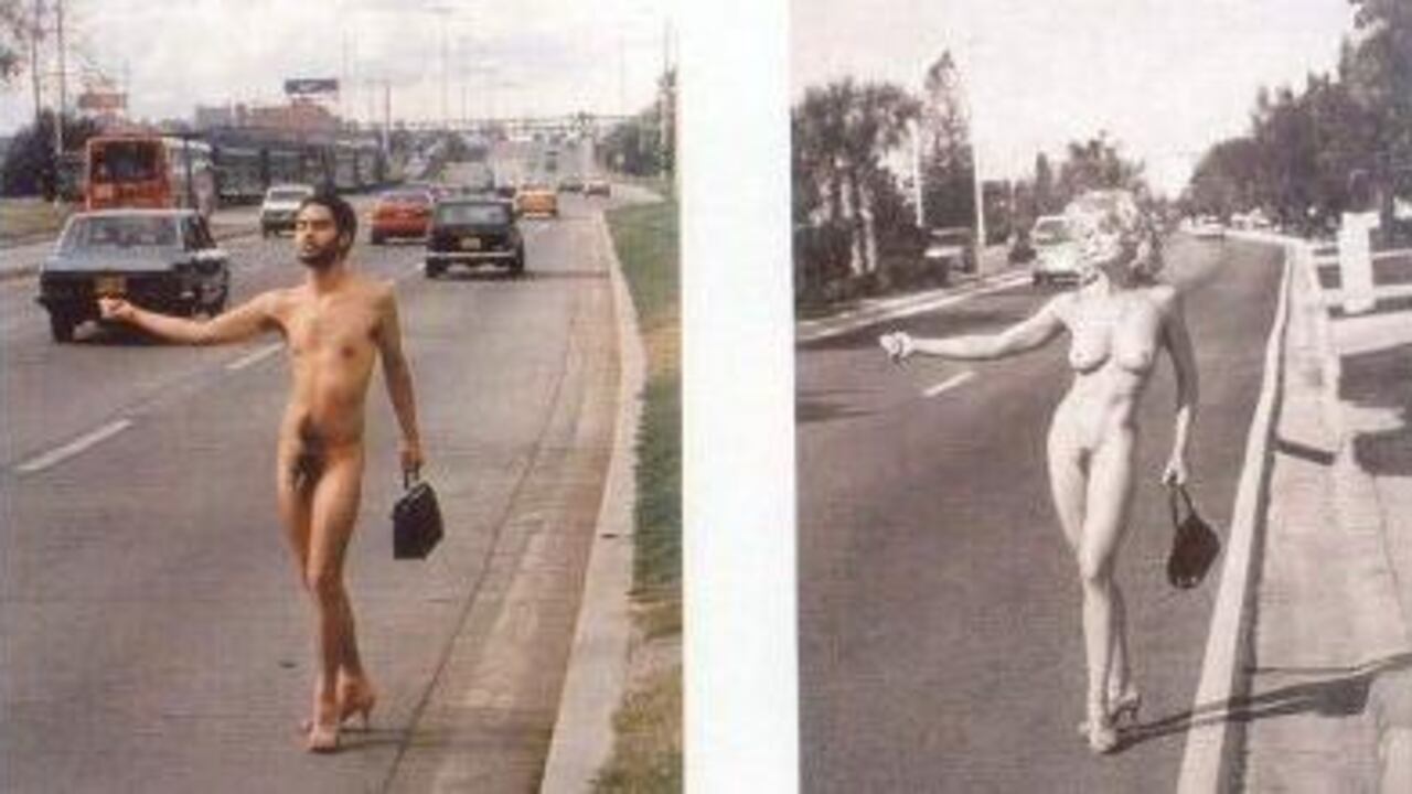 Andrea Barragán, la más joven de este grupo de artistas, ha concebido un personaje inter-género al que llama Seguei. Es un personaje que se resiste a asumir alguna identidad de género y que opta por cruzar continuamente las fronteras de las identificaciones femeninas y masculinas para enredar sus referencias. En este ejercicio parece explorar la dimensión masculina de la feminidad, aunque se niega a ubicarla en un lugar fijo. Catalina Rodríguez, quien comenzó a trabajar desde finales de la década del noventa, también ha explorado este tipo de cruces en obras como su instalación de video Envidia de pene. En esta muestra la parte media de un cuerpo —que parece revelarse como masculino—, que extrae de su bragueta un objeto fálico, blandido orgullosamente hasta caerse, revelando que no es otra cosa que un banano. Sin embargo, en su proyecto de video Di, explora la dimensión contraria para construirse imaginariamente como una princesa que vive en un castillo, pero que no encaja con el estereotipo corporal ni étnico.