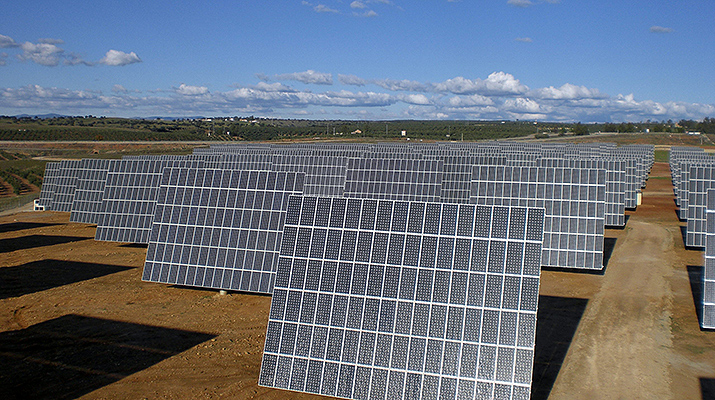 Varios módulos de la planta fotovoltaíca Copero PV, cerca de Dos Hermanas, en Sevilla (España), que son iguales a los paneles de la futura planta fotovoltaica de Atacama 1.