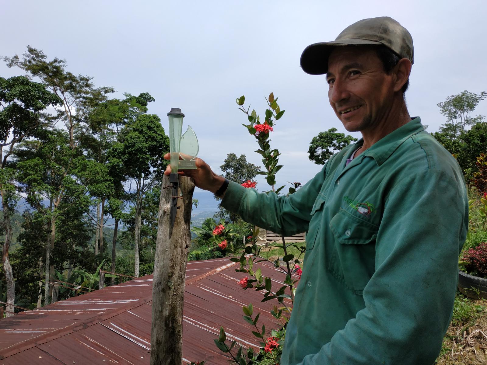 Cuando Natura e Isagen le dijeron que querían trabajar de la mano con los campesinos en medir el clima, hace casi cinco años, no vaciló en aceptar la propuesta, aunque afirma que al comienzo no entendió muy bien de qué se trataba. “Era algo novedoso. Querían que aprendiera a medir la temperatura y la lluvia en la finca. Mi respuesta fue: qué hay que hacer, cómo es la vaina”.