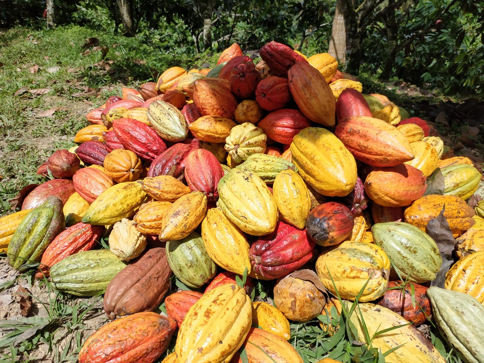 Las mazorcas, nombre dado por los campesinos al fruto del cacao, convierten el panorama verdoso y montañoso en una acuarela colorida repleta de tonos rojos, amarillos y morados provenientes de las duras cáscaras de estas frutas, que cumplen la función de proteger las semillas con las que es producido el chocolate. Las aves revolotean sin cesar por los bosques esperando que alguna mazorca caiga para tratar de machacar su coraza.