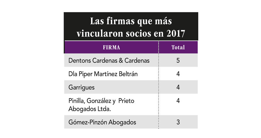 No sobra recordar algunas de estas movidas: Prietocarrizosa, que, después de una megafusión regional, ahora es Philippi PrietoCarrizosa Ferrero DU & Uría; Dentons Cardenas & Cardenas, cuya integración se dio en 2015, así como la de DLA Piper, que entró al país de la mano de la firma Martínez Neira. Garrigues abrió oficina en el país y Posse Herrera Ruiz hizo una alianza con la española Cuatrecasas.
