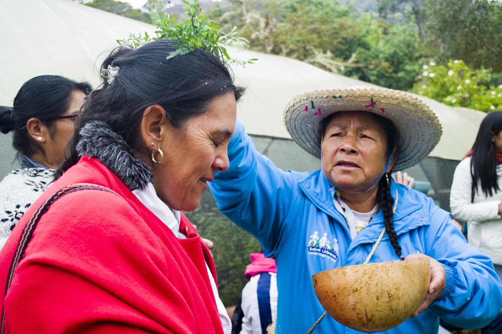 En esa hora de almuerzo, campesinos, afros e indígenas aprovechan para compartir anécdotas basadas en sus diferentes contextos, como es el caso de Nelly Perea Flórez, partera ancestral del kilombo Girasol de la localidad de Usme, quien recuerda que utiliza las plantas medicinales desde que vivía en el corregimiento Raspadura, Chocó, y hoy, pese a ser una desplazada más por la violencia, celebra que logró encontrar un espacio en la ciudad para trabajar en comunidad.