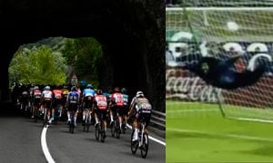 Al tiempo que esto sucedía en cabeza de etapa, en el lote principal se activó la estrategia del Bahrain para aumentar las probabilidades de podio de Mikel Landa. El español salió al ataque apoyado en el desgaste de Santiago Buitrago y Pello Bilbao, que trabajaron a fuego para dejarlo solo con Richard Carapaz y Jai Hindley, primero y segundo de la clasificación general, respectivamente.