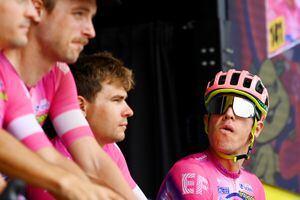 Ya sin posibilidades de pelear por la etapa, el compañero de Rigoberto Urán se unió a Olivier Le Gac (Groupama-FDJ), quien también desistió de hacer un buen tiempo en la contrarreloj. Azotado por el calor y el desafortunado problema mecánico, Bisseger volvió a robarse la atención de la transmisión oficial por un gesto entre rivales.