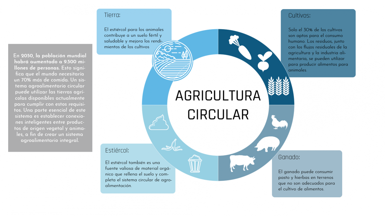 Por esto fue por lo que empezamos a pensar en el futuro de la agricultura en los Países Bajos. Y entonces ahí fue cuando surgió el concepto de economía circular, y más preciso, de agricultura circular. En este modelo no sólo se trata de producir todo lo que sea posible por el menor precio, pero también se trata de cuidar el ambiente y mejorar las condiciones durante el proceso. Reducir los desperdicios principalmente, volverlos parte de la cadena. Eso es lo más importante».