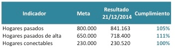 En cuando a los hogares conectables, es decir, a los que tan solo falta su inscripción en el servicio y la conexión final hasta la sala de la casa o apartamento, la cifra llegó a 230.520, cuando la meta trazada era de 230 mil hogares, para un cumplimiento de 100%.