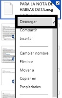 1. Identifique el correo que quiere guardar en la Nube y con el clic izquierdo y seleccione la opción “Copiar”, cómo se ve en la imagen: