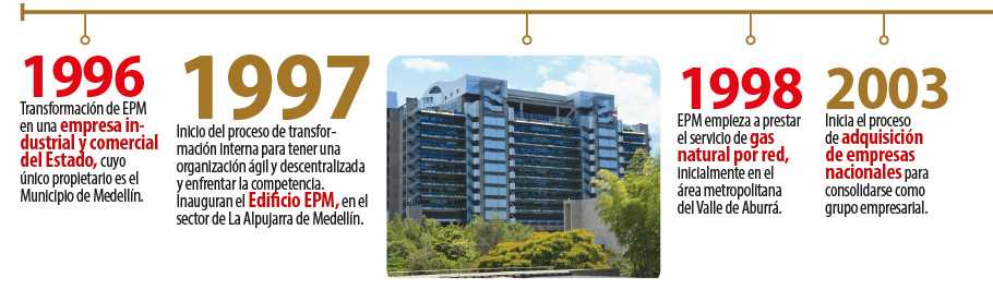 El 1º de enero de 1996, y en cumplimiento de lo dispuesto por las Leyes 142 y 143 de 1994, Empresas Públicas de Medellín (EPM) –fundada en 1955– comenzó a operar como Empresa de Servicios Públicos (ESP) de carácter público y no privado, como era la usanza en la época.