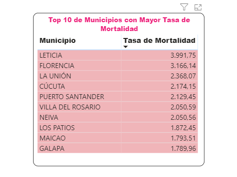 Definir y aclarar cómo funcionará la logística de vacunación en las zonas apartadas y rurales cobra mayor relevancia si se revisan, por ejemplo, las cifras de mortalidad en el país. Según las estadísticas del Instituto Nacional de Salud, los 10 municipios con mayor índice de mortalidad están ubicados en la periferia y todos tienen poblaciones ampliamente rurales (ver gráfica).