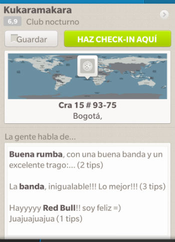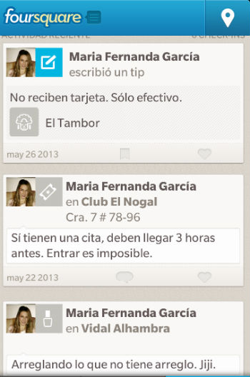 Cuando usted llegue a un lugar puede hacer "Check in" para registrar el lugar donde se encuentra, pero más allá de eso puede recomendar, criticar y darle tips a otros usuarios que quieran visitar ese sitio.