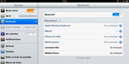 En el ejemplo siguiente, vamos a navegar en un iPad con internet de un iPhone llamado "iMartin". Cuando el iPad le muestre los equipos con Bluetooth detectados, seleccione el que desea conectar, en este caso "iMartin".