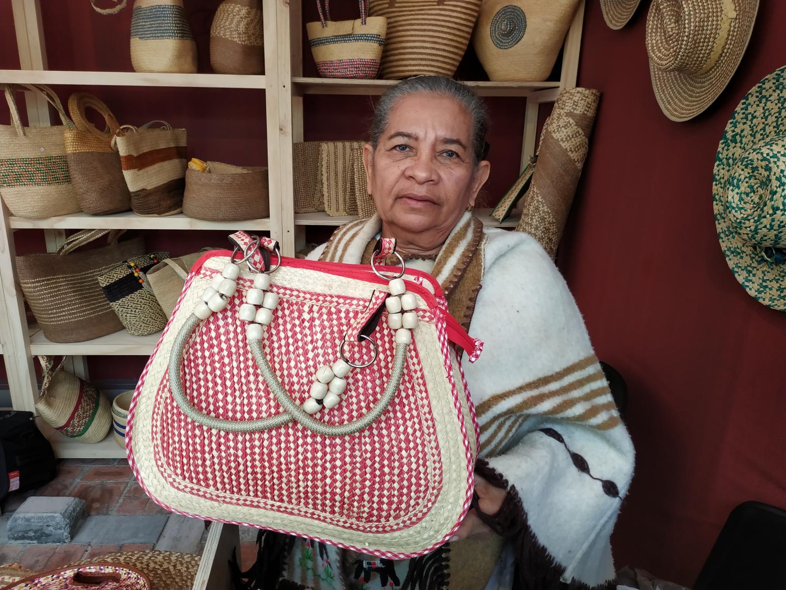 La única hija mujer que tuvo Alicia Bolívar aprendió a trenzar y coser gracias a su mamá. Este bolso fue elaborado por ella. ©Jhon Barros